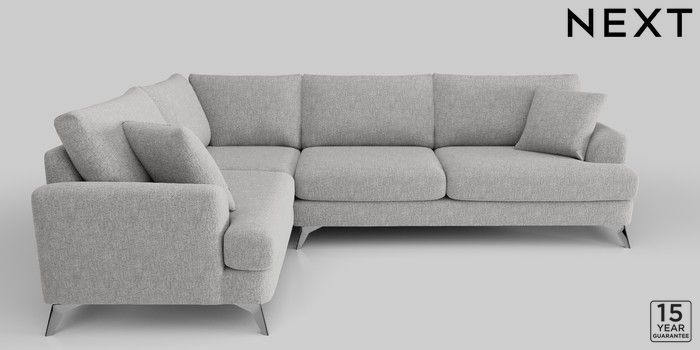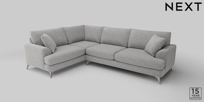 6.12.1 Buy Parker Large Corner Sofa - Left Hand Chunky Chenille Light Grey High Metal - Chrome from the Next UK online shop Click here to use our accessible website