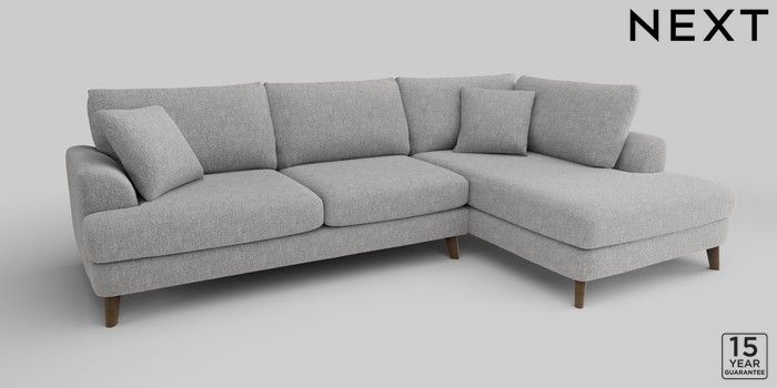6.12.1 Buy Parker Large Corner Chaise - Right Hand Chunky Chenille Light Grey Low Retro Tapered - Mid from the Next UK online shop Click here to use our accessible website