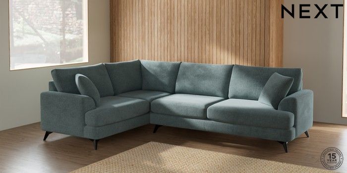 7.2.5 Buy Parker Large Corner Sofa - Left Hand Chunky Chenille Light Teal Green High Metal - Black from the Next UK online shop Click here to use our accessible website