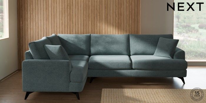 7.2.10 Buy Parker Large Corner Sofa - Left Hand Chunky Chenille Light Teal Green High Metal - Black from the Next UK online shop Click here to use our accessible website
