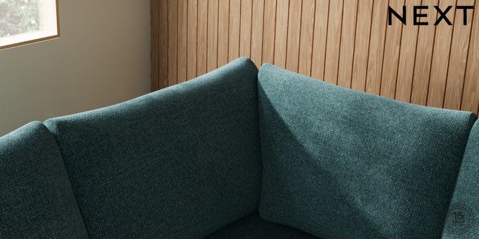 7.2.10 Buy Parker Large Corner Sofa - Left Hand Chunky Chenille Mid Teal Green High Metal - Brass from the Next UK online shop Click here to use our accessible website