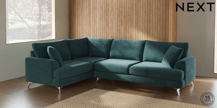 7.2.5 Buy Parker Large Corner Sofa - Left Hand Chunky Chenille Mid Teal Green High Metal - Chrome from the Next UK online shop Click here to use our accessible website