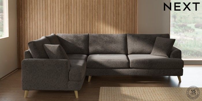 7.2.10 Buy Parker Large Corner Sofa - Left Hand Chunky Chenille Mink Brown Low Retro Tapered - Light from the Next UK online shop Click here to use our accessible website