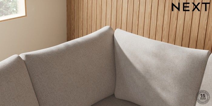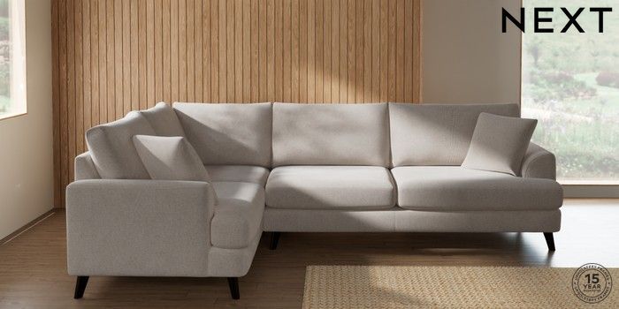 7.2.10 Buy Parker Large Corner Sofa - Left Hand Chunky Chenille Oyster Low Retro Tapered - Dark from the Next UK online shop Click here to use our accessible website