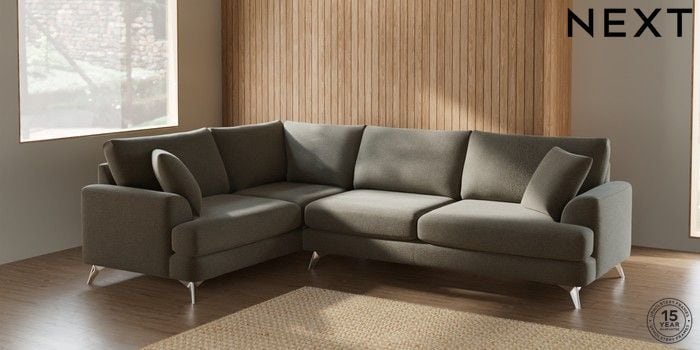 7.2.5 Buy Parker Large Corner Sofa - Left Hand Chunky Marl Light Olive Green High Metal - Chrome from the Next UK online shop Click here to use our accessible website