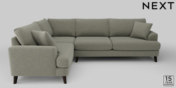 6.12.1 Buy Parker Large Corner Sofa - Left Hand Chunky Marl Light Olive Green Low Retro Tapered - Dark from the Next UK online shop Click here to use our accessible website