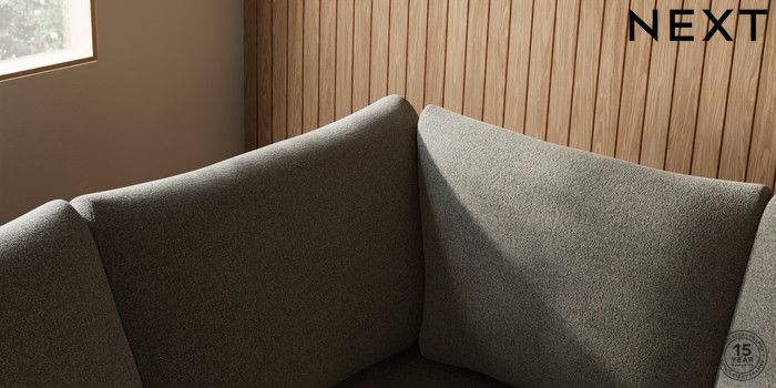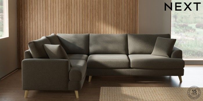 7.2.10 Buy Parker Large Corner Sofa - Left Hand Chunky Marl Light Olive Green Low Retro Tapered - Light from the Next UK online shop Click here to use our accessible website