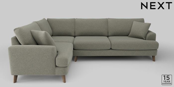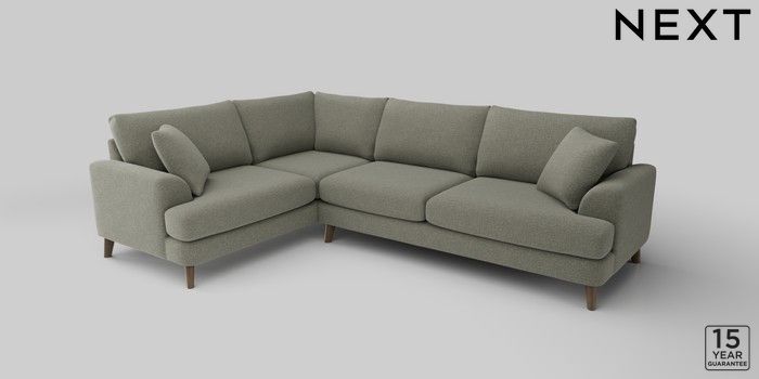 6.12.1 Buy Parker Large Corner Sofa - Left Hand Chunky Marl Light Olive Green Low Retro Tapered - Mid from the Next UK online shop Click here to use our accessible website