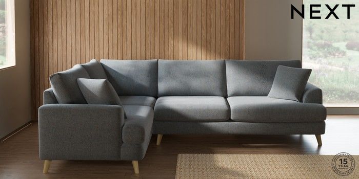 7.2.10 Buy Parker Large Corner Sofa - Left Hand Chunky Marl Mid Grey Low Retro Tapered - Light from the Next UK online shop Click here to use our accessible website