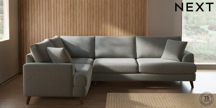 7.2.10 Buy Parker Large Corner Sofa - Left Hand Chunky Texture Dove Low Retro Tapered - Mid from the Next UK online shop Click here to use our accessible website