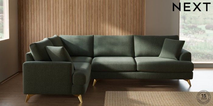 7.2.10 Buy Parker Large Corner Sofa - Left Hand Chunky Texture Mid Forest Green High Metal - Brass from the Next UK online shop Click here to use our accessible website