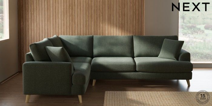 7.2.10 Buy Parker Large Corner Sofa - Left Hand Chunky Texture Mid Forest Green Low Retro Tapered - Light from the Next UK online shop Click here to use our accessible website