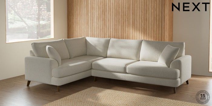 7.2.5 Buy Parker Large Corner Sofa - Left Hand Chunky Texture Oyster Low Retro Tapered - Mid from the Next UK online shop Click here to use our accessible website