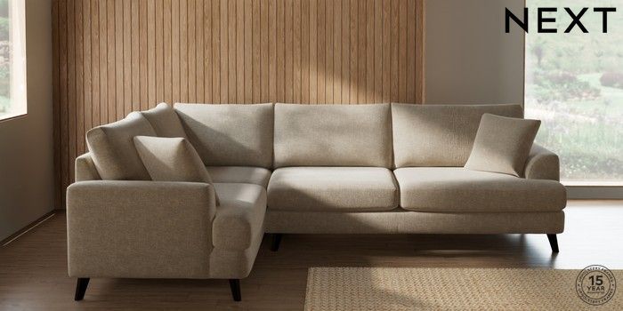 7.2.10 Buy Parker Large Corner Sofa - Left Hand Chunky Weave Cream Low Retro Tapered - Dark from the Next UK online shop Click here to use our accessible website