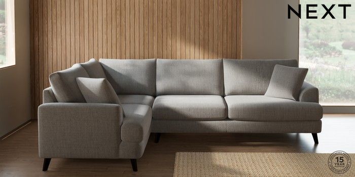 7.2.10 Buy Parker Large Corner Sofa - Left Hand Chunky Weave Dove Grey Low Retro Tapered - Dark from the Next UK online shop Click here to use our accessible website
