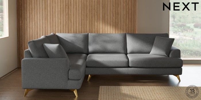 7.2.10 Buy Parker Large Corner Sofa - Left Hand Chunky Weave Mid Grey High Metal - Brass from the Next UK online shop Click here to use our accessible website