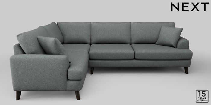 6.12.1 Buy Parker Large Corner Sofa - Left Hand Chunky Weave Mid Grey Low Retro Tapered - Dark from the Next UK online shop Click here to use our accessible website