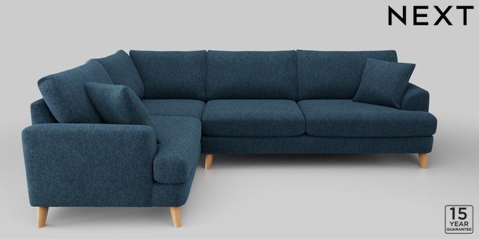 6.12.1 Buy Parker Large Corner Sofa - Left Hand Cotswold Chenille Dark Blue Low Retro Tapered - Light from the Next UK online shop Click here to use our accessible website