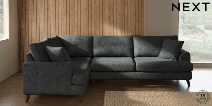 7.2.10 Buy Parker Large Corner Sofa - Left Hand Cotswold Chenille Dark Grey Low Retro Tapered - Mid from the Next UK online shop Click here to use our accessible website