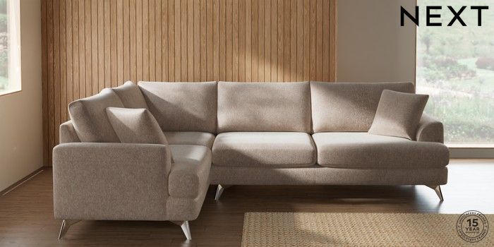 7.2.10 Buy Parker Large Corner Sofa - Left Hand Cotswold Chenille Light Natural High Metal - Chrome from the Next UK online shop Click here to use our accessible website