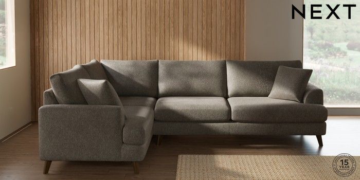 7.0.3 Buy Parker Large Corner Sofa - Left Hand Cotswold Chenille Mid Mink Brown Low Retro Tapered - Mid from the Next UK online shop Click here to use our accessible website