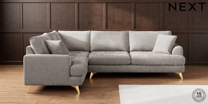 7.3.1 Buy Parker Large Corner Sofa - Left Hand Distressed Velour French Grey High Metal - Brass from the Next UK online shop Click here to use our accessible website