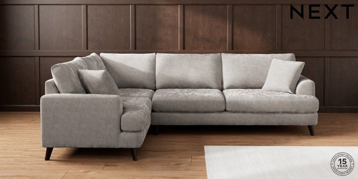 7.2.10 Buy Parker Large Corner Sofa - Left Hand Distressed Velour French Grey Low Retro Tapered - Dark from the Next UK online shop Click here to use our accessible website