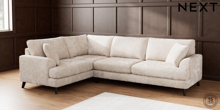 7.2.5 Buy Parker Large Corner Sofa - Left Hand Distressed Velour Mid Natural Low Retro Tapered - Dark from the Next UK online shop Click here to use our accessible website