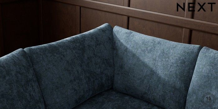 7.2.10 Buy Parker Large Corner Sofa - Left Hand Distressed Velour Midnight Blue Low Retro Tapered - Mid from the Next UK online shop Click here to use our accessible website