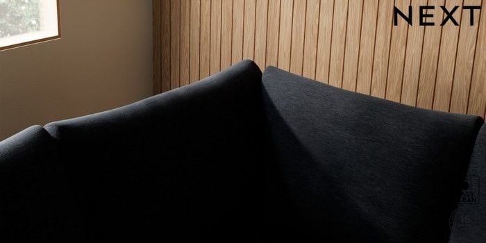 7.2.10 Buy Parker Large Corner Sofa - Left Hand Fine Chenille Easy Clean Black Low Retro Tapered - Dark from the Next UK online shop Click here to use our accessible website