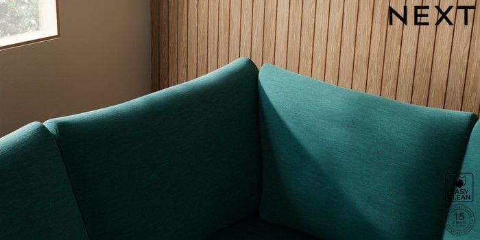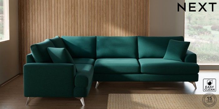 7.2.10 Buy Parker Large Corner Sofa - Left Hand Fine Chenille Easy Clean Dark Juniper Green High Metal - Chrome from the Next UK online shop Click here to use our accessible website