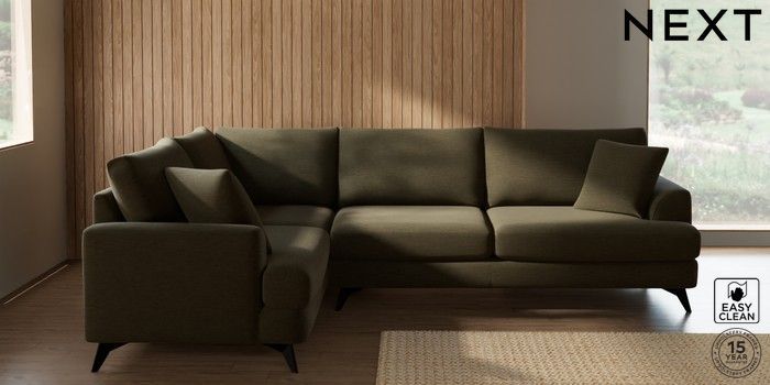 7.3.1 Buy Parker Large Corner Sofa - Left Hand Fine Chenille Easy Clean Dark Moss Green High Metal - Black from the Next UK online shop Click here to use our accessible website