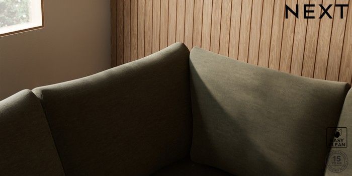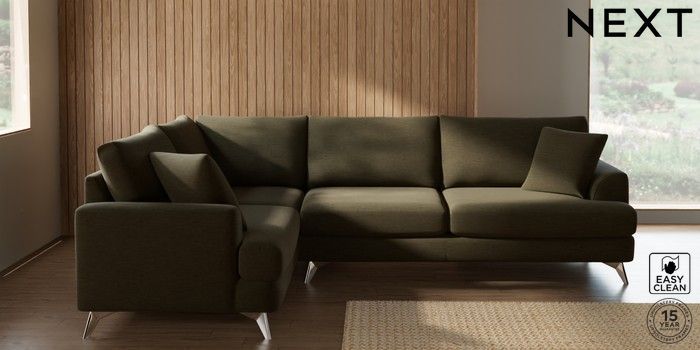 7.2.10 Buy Parker Large Corner Sofa - Left Hand Fine Chenille Easy Clean Dark Moss Green High Metal - Chrome from the Next UK online shop Click here to use our accessible website