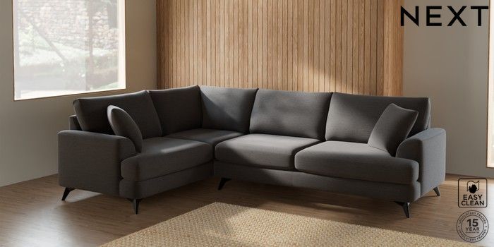7.2.5 Buy Parker Large Corner Sofa - Left Hand Fine Chenille Easy Clean Dark Smoke Grey High Metal - Black from the Next UK online shop Click here to use our accessible website