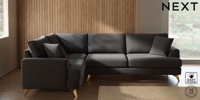 7.2.10 Buy Parker Large Corner Sofa - Left Hand Fine Chenille Easy Clean Dark Smoke Grey High Metal - Brass from the Next UK online shop Click here to use our accessible website