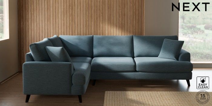 7.2.10 Buy Parker Large Corner Sofa - Left Hand Fine Chenille Easy Clean Mid Blue Low Retro Tapered - Dark from the Next UK online shop Click here to use our accessible website