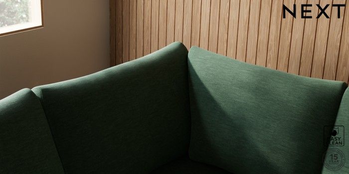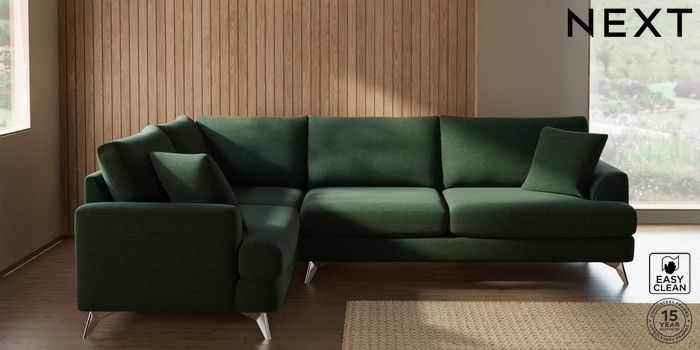 7.2.10 Buy Parker Large Corner Sofa - Left Hand Fine Chenille Easy Clean Mid Khaki Green High Metal - Chrome from the Next UK online shop Click here to use our accessible website