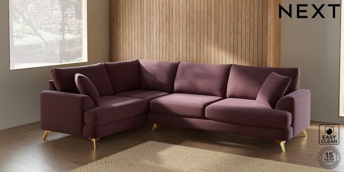 7.2.5 Buy Parker Large Corner Sofa - Left Hand Fine Chenille Easy Clean Mid Mulberry Purple High Metal - Brass from the Next UK online shop Click here to use our accessible website
