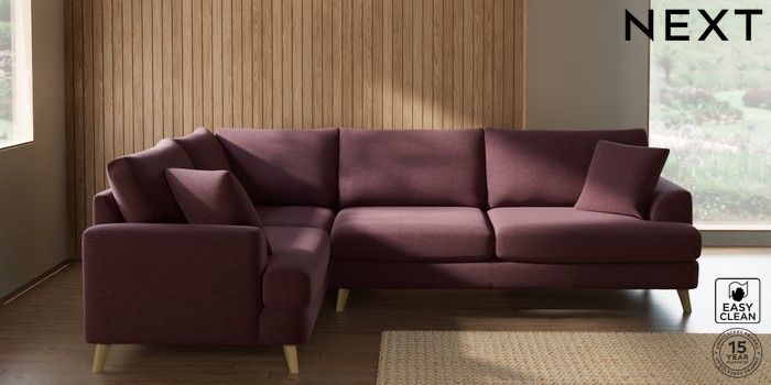 7.2.10 Buy Parker Large Corner Sofa - Left Hand Fine Chenille Easy Clean Mid Mulberry Purple Low Retro Tapered - Light from the Next UK online shop Click here to use our accessible website