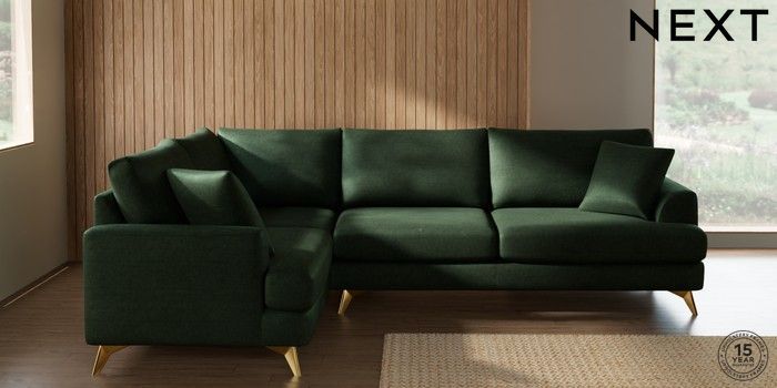 7.2.10 Buy Parker Large Corner Sofa - Left Hand Luxe Chenille Dark Green High Metal - Brass from the Next UK online shop Click here to use our accessible website