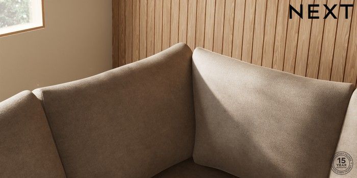 7.2.10 Buy Parker Large Corner Sofa - Left Hand Luxe Chenille Mid Camel Beige High Metal - Brass from the Next UK online shop Click here to use our accessible website