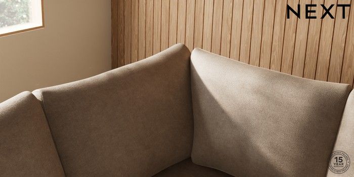 7.2.10 Buy Parker Large Corner Sofa - Left Hand Luxe Chenille Mid Camel Beige Low Retro Tapered - Light from the Next UK online shop Click here to use our accessible website