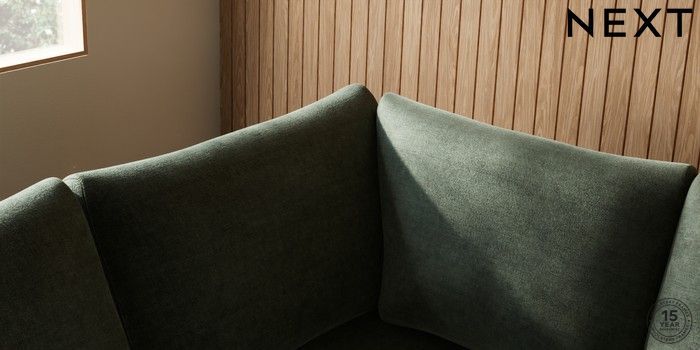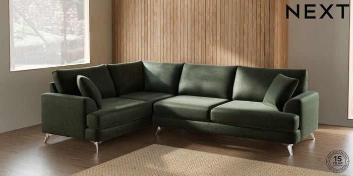 7.0.3 Buy Parker Large Corner Sofa - Left Hand Luxe Chenille Mid Green High Metal - Chrome from the Next UK online shop Click here to use our accessible website