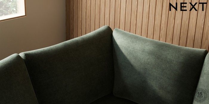 7.0.3 Buy Parker Large Corner Sofa - Left Hand Luxe Chenille Mid Green Low Retro Tapered - Dark from the Next UK online shop Click here to use our accessible website