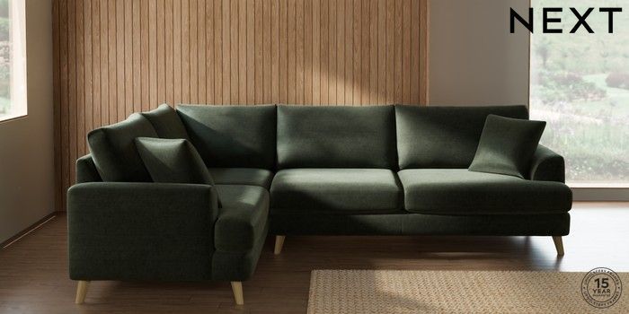 7.0.3 Buy Parker Large Corner Sofa - Left Hand Luxe Chenille Mid Green Low Retro Tapered - Light from the Next UK online shop Click here to use our accessible website