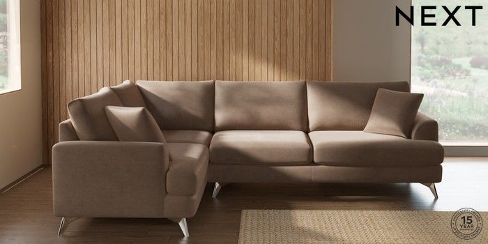 7.2.10 Buy Parker Large Corner Sofa - Left Hand Luxe Chenille Mid Natural High Metal - Chrome from the Next UK online shop Click here to use our accessible website