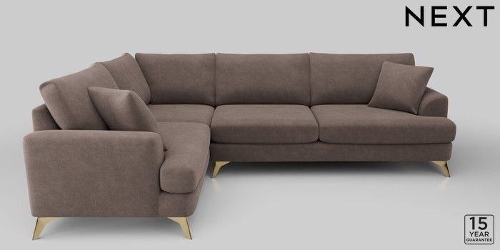 6.12.1 Buy Parker Large Corner Sofa - Left Hand Luxe Chenille Mink Brown High Metal - Brass from the Next UK online shop Click here to use our accessible website