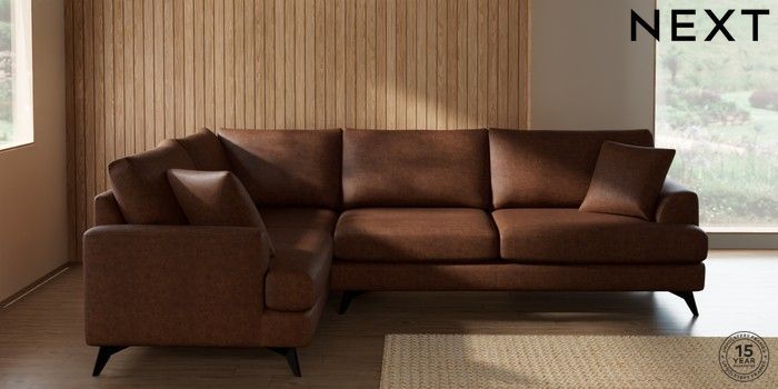 7.3.1 Buy Parker Large Corner Sofa - Left Hand Monza Faux Leather Easy Clean Chestnut Brown High Metal - Black from the Next UK online shop Click here to use our accessible website