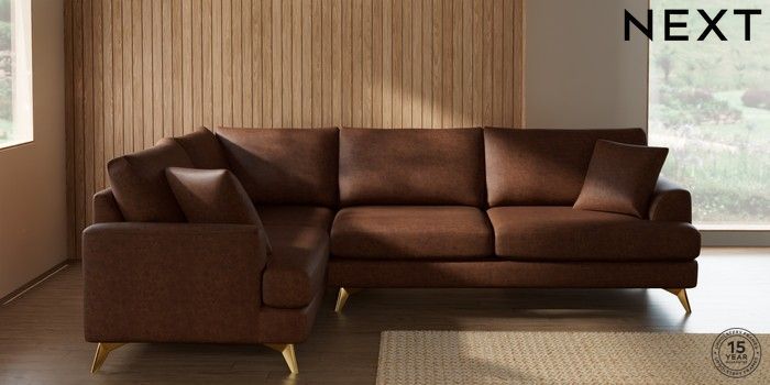 7.3.1 Buy Parker Large Corner Sofa - Left Hand Monza Faux Leather Easy Clean Chestnut Brown High Metal - Brass from the Next UK online shop Click here to use our accessible website