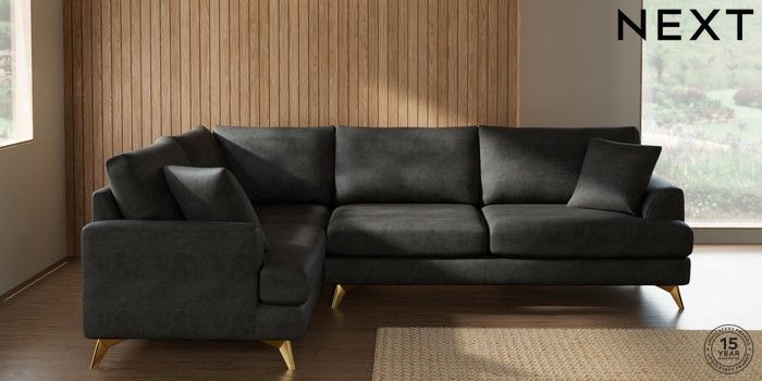 7.3.1 Buy Parker Large Corner Sofa - Left Hand Monza Faux Leather Easy Clean Dark Grey High Metal - Brass from the Next UK online shop Click here to use our accessible website